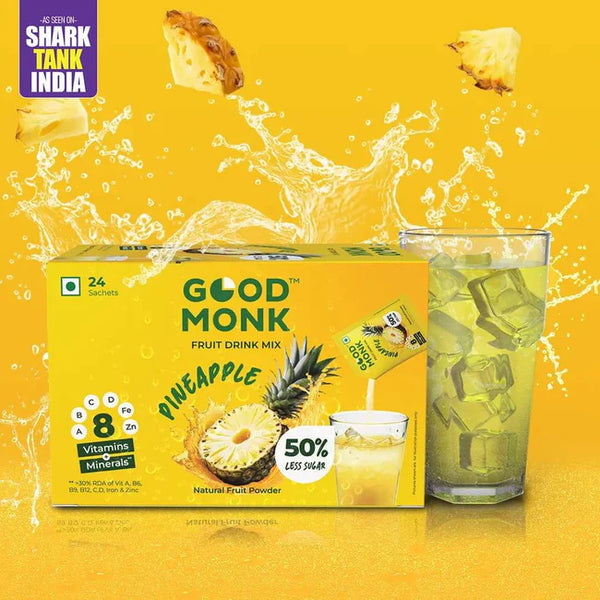 Good Monk’s instant energy juice powder is a nutritious option enriched with 8 essential vitamins and minerals. This nutrition powder for adults and kids boasts 50% less sugar compared to typical drinks on the market and is available in four delightful flavours to suit various preferences.