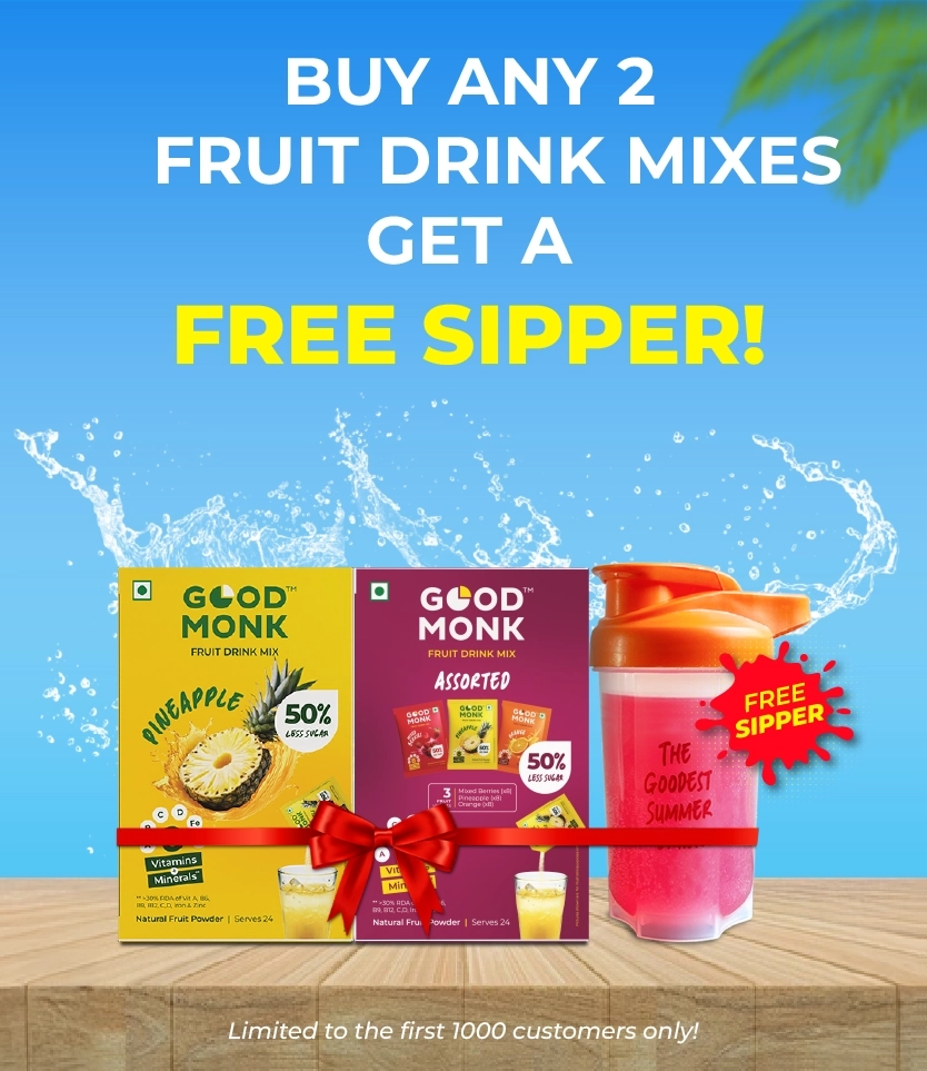 Craving a healthy and nutritious drink? Good Monk’s pineapple powder instant fruit drink mix offers you essential nutrients and real fruit flavour in every sip. It is quick to prepare and is a smart choice for parents, and fun for kids to start the day with a refreshing twist. All you need is to add water and enjoy tropical wellness in the comfort of your home. Try the delicious summer drink powder from Good Monk for a perfect blend of nutrition and taste.