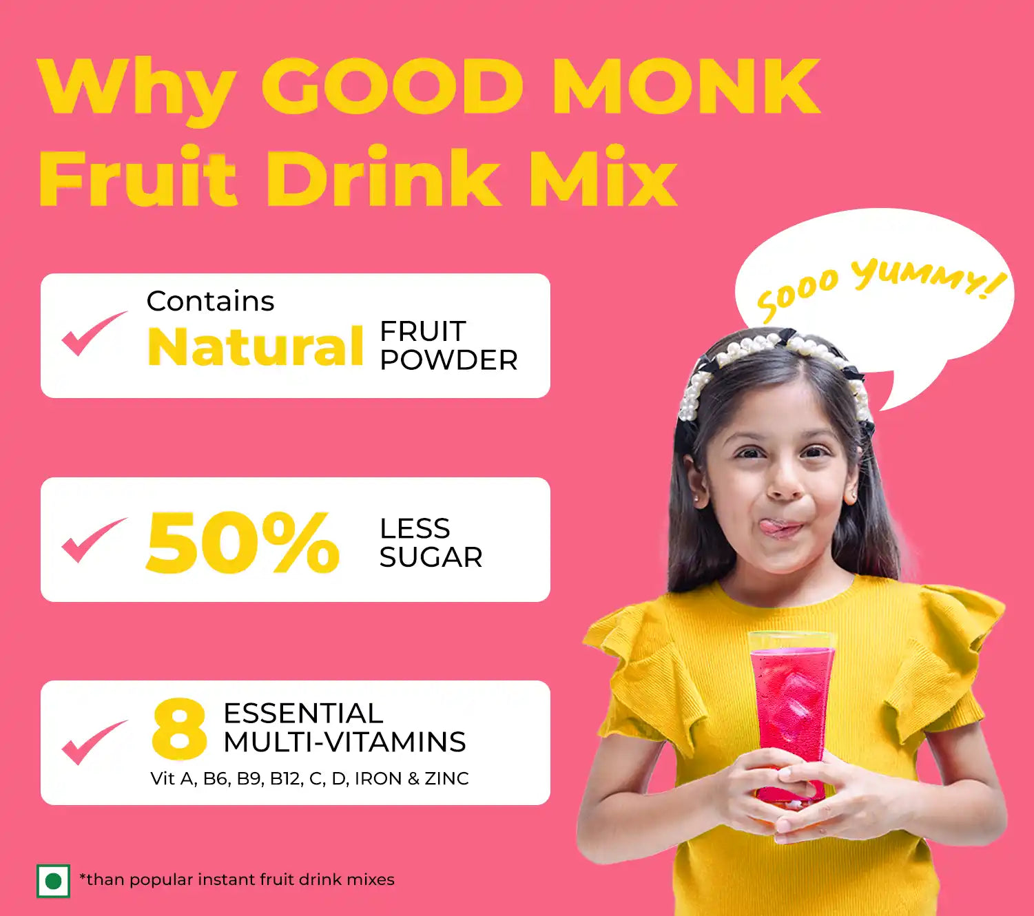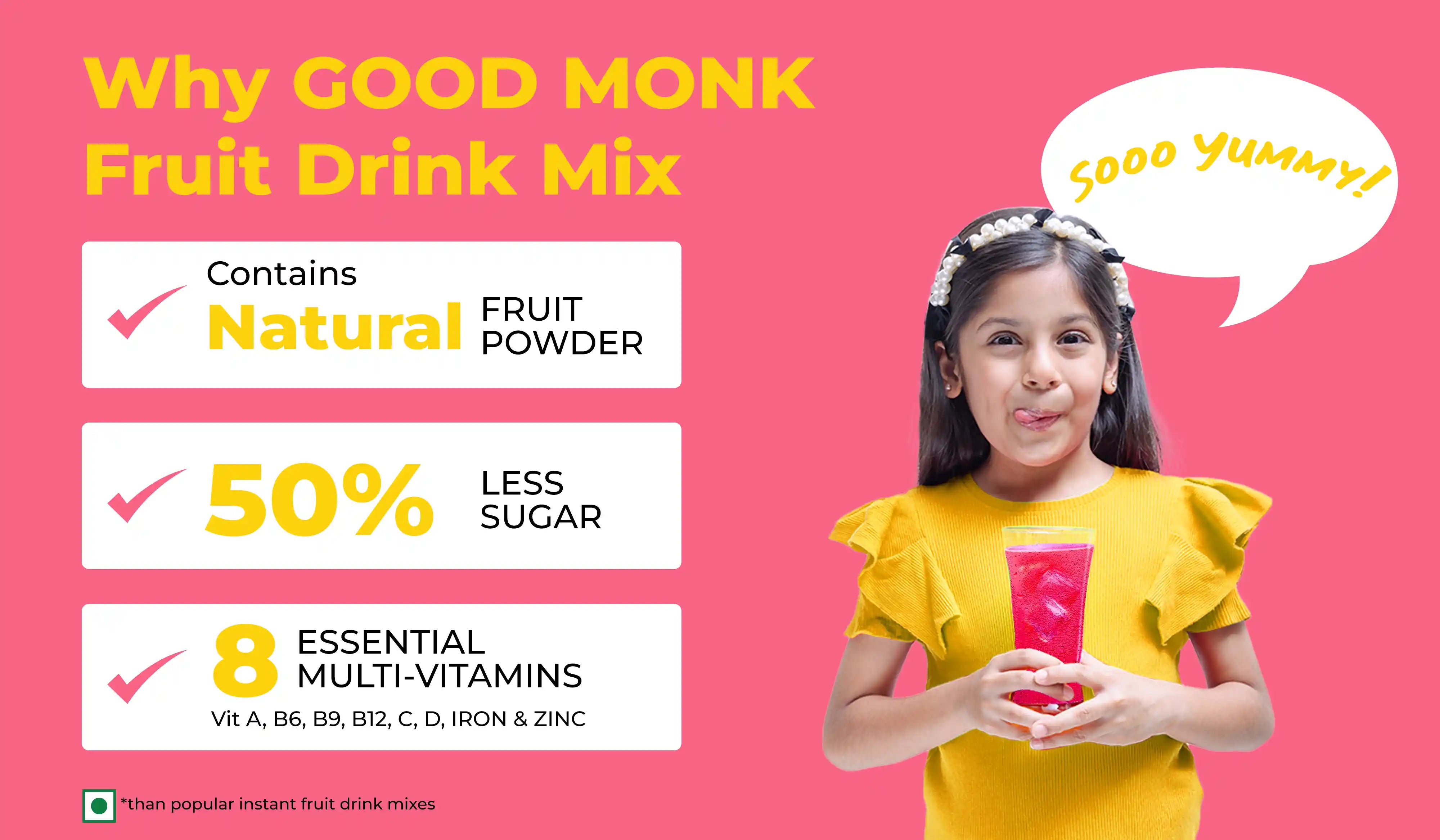 Good Monk is all about making nutrition easy, bridging the gap between health food and nutrition by creating clinically proven solutions for micronutrient deficiencies. Here are some reasons to choose Good Monk for Instant Fruit Drinks and Health Supplements: